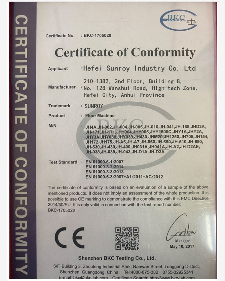 Hefei Sunroy Industry Co.Ltd is one of the professional manufacturers of industrial and commercial cleaning machines in China.Our factory is located in Hefei, near Shanghai City.We pride ourselves on providing the most stable quality and exceptional customer service to earn our customers'trust.