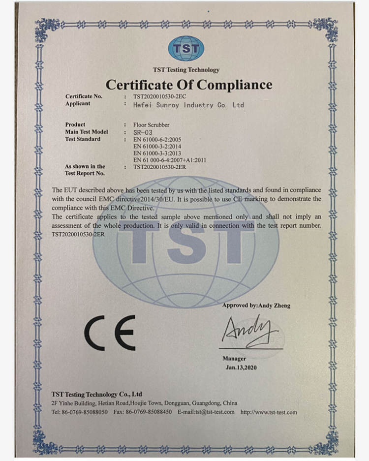 Hefei Sunroy Industry Co. Ltd is a professional company that is engaged in the research, development, sale, and service of walk behind floor scrubbers, ride-on floor scrubbers, sweepers, and vacuum cleaners. We have over 10 years of manufacturing experience and have produced a total of 400,000 cleaning equipment. We are an ODM (original design manufacturer) for many well-known brands. Our company currently has more than 300 employees and covers an area of 40,000 square meters.