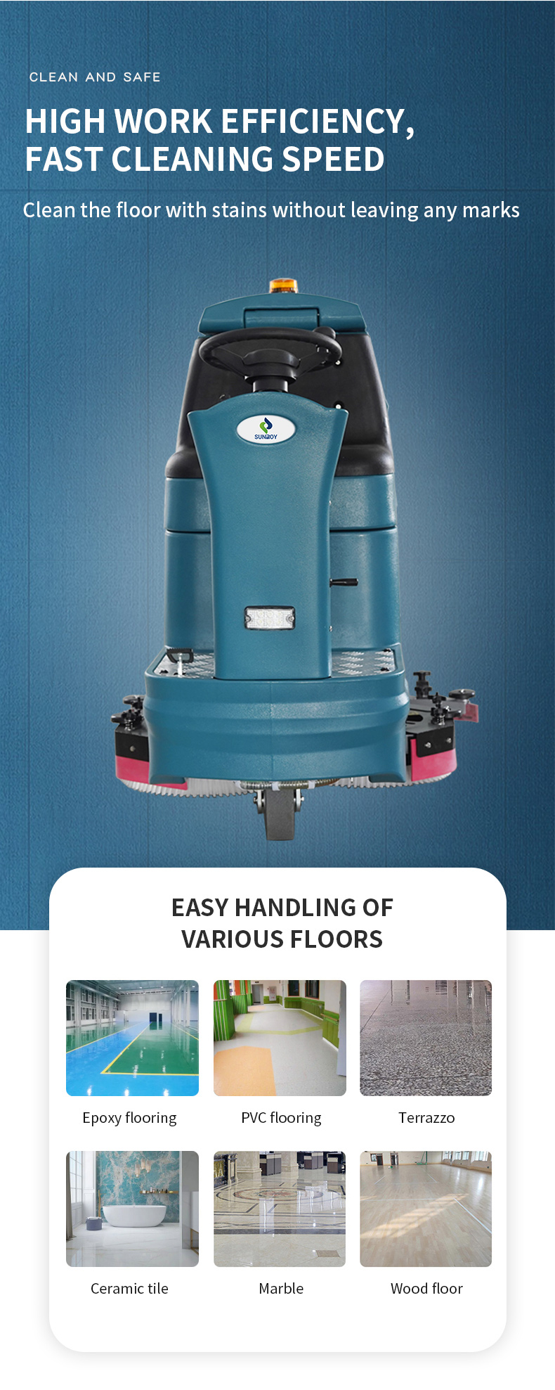 Introducing our Efficient Cleaning Machine Ride On Commercial Floor Scrubber,a powerful and efficient cleaning solution for large industrial and commercial floor surfaces.This machine is designed to clean and maintain various types of flooring,including concrete,tile,and marble,by removing dirt,dust,and debris with ease.