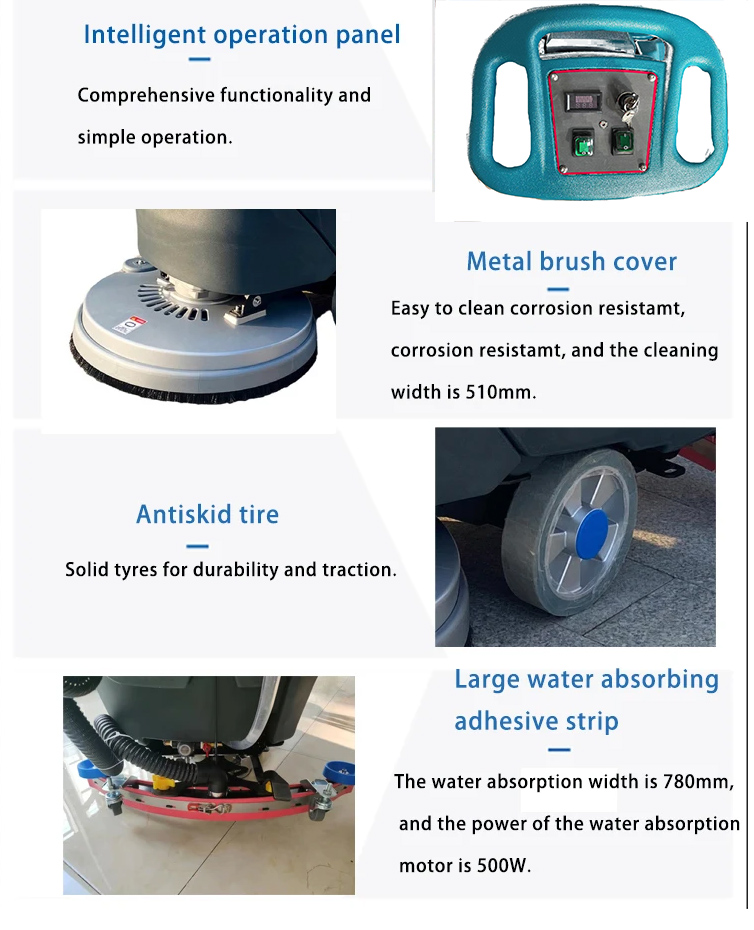 Our professional industrial commercial floor scrubber is a hand push walk behind machine that provides exceptional cleaning results on various flooring surfaces. It features a high-performance motor, large capacity water tank, and high-pressure wash system for deep cleaning. The machine is easy to maneuver around obstacles and tight spaces, lightweight, and reduces operator fatigue. It also has a low profile design and non-slip foot pedals for safety. Ideal for businesses looking for a reliable and efficient way to maintain a clean working environment.