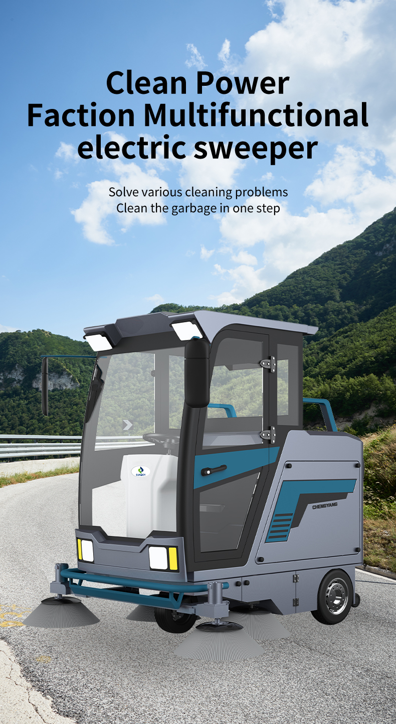 Fully Enclosed Electric Floor Sweeper Ride On Battery Street Cleaning Equipment Description.