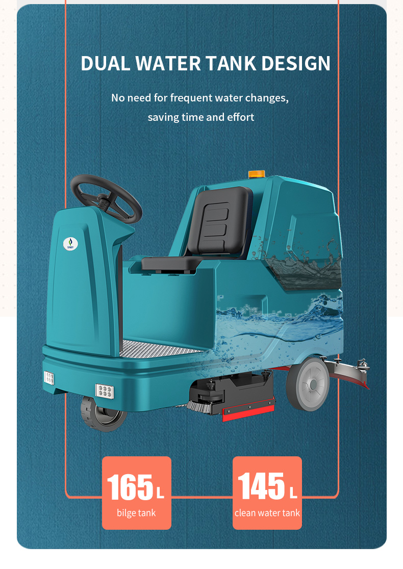 The Chinese wholesale industrial cleaning machine ride-on electric floor street cleaning sweeper is a powerful and efficient tool designed for cleaning large areas of floors,such as factories,warehouses,parking lots,and other commercial spaces.It is an electric machine that operates on a ride-on platform,allowing the user to easily maneuver it around obstacles and cover large areas with ease.