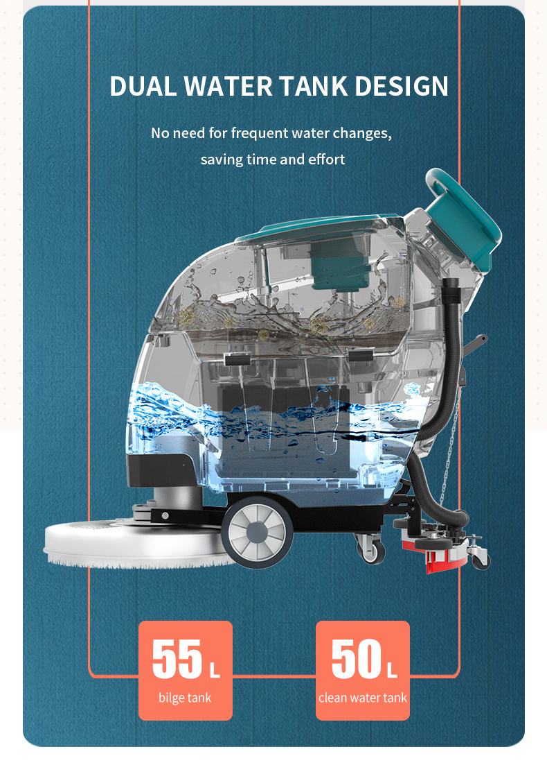 The hand push design of these floor scrubbers makes them easy to maneuver around tight spaces and corners,allowing for thorough cleaning of even the most difficult areas.The compact size of the scrubber also makes it convenient for storage and transport.