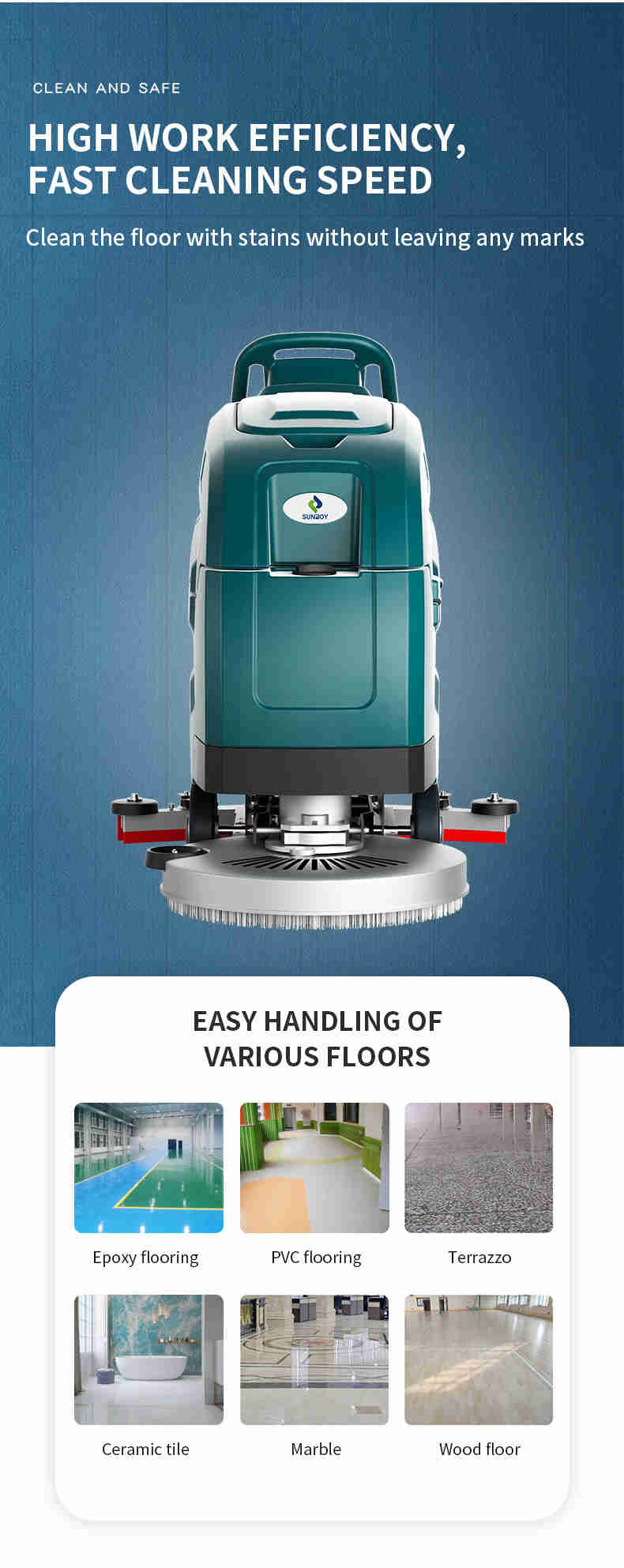 Sunroy is a top brand in China that offers OEM hand push marble micro compact floor scrubbers.These floor scrubbers are designed to effectively clean and maintain the appearance of marble floors.They are equipped with micro-fiber pads that are gentle on the surface of the marble,yet powerful enough to remove dirt,grime,and stains.